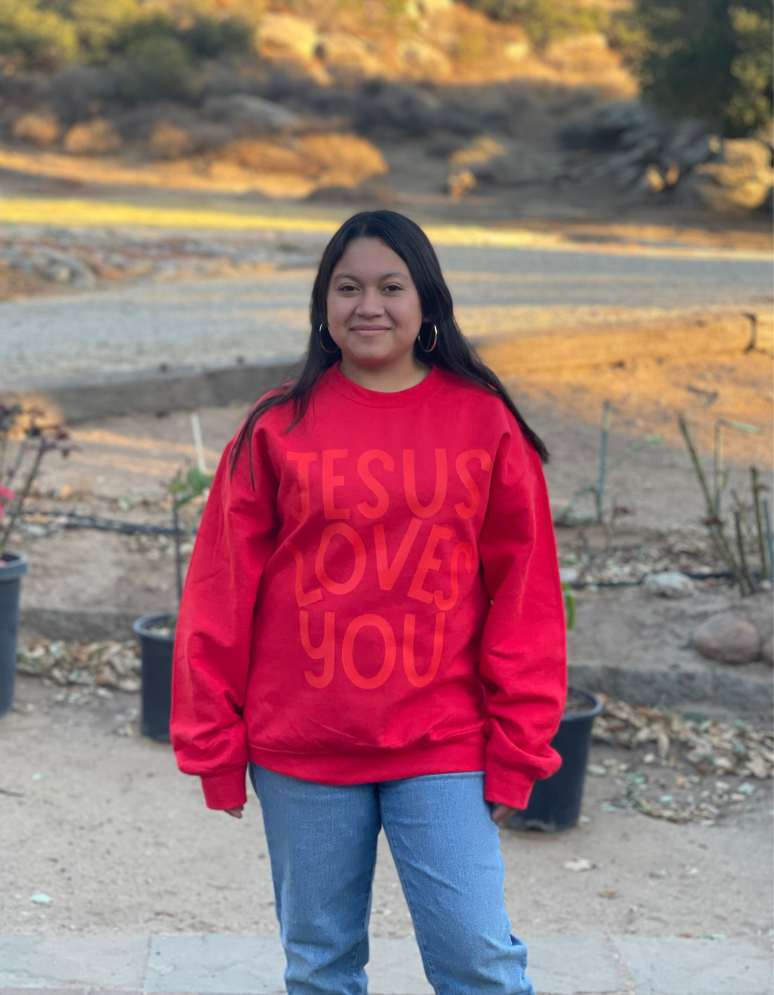 Red Color Jesus Loves You Crewneck Sweatshirt